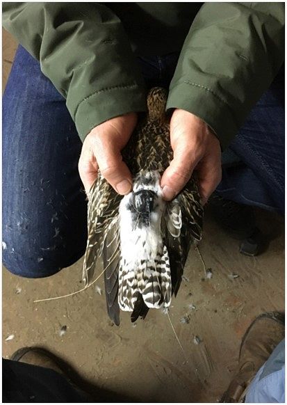 Bird with a WATLAS tag and MOTUS tag. Photograph from Roeland Bom