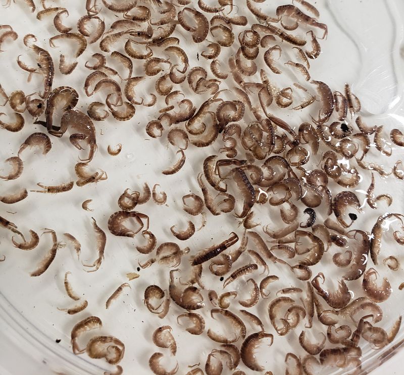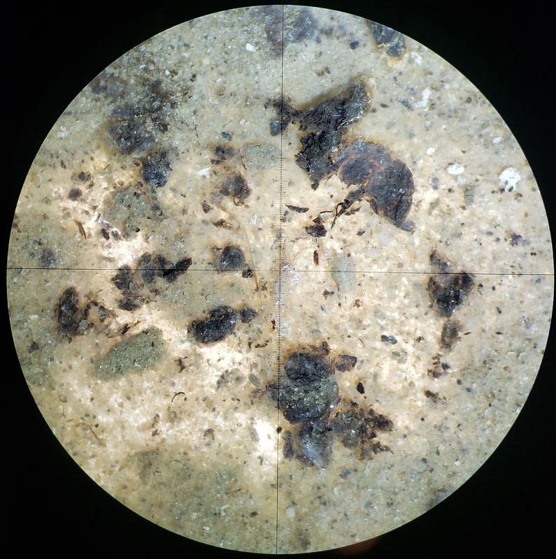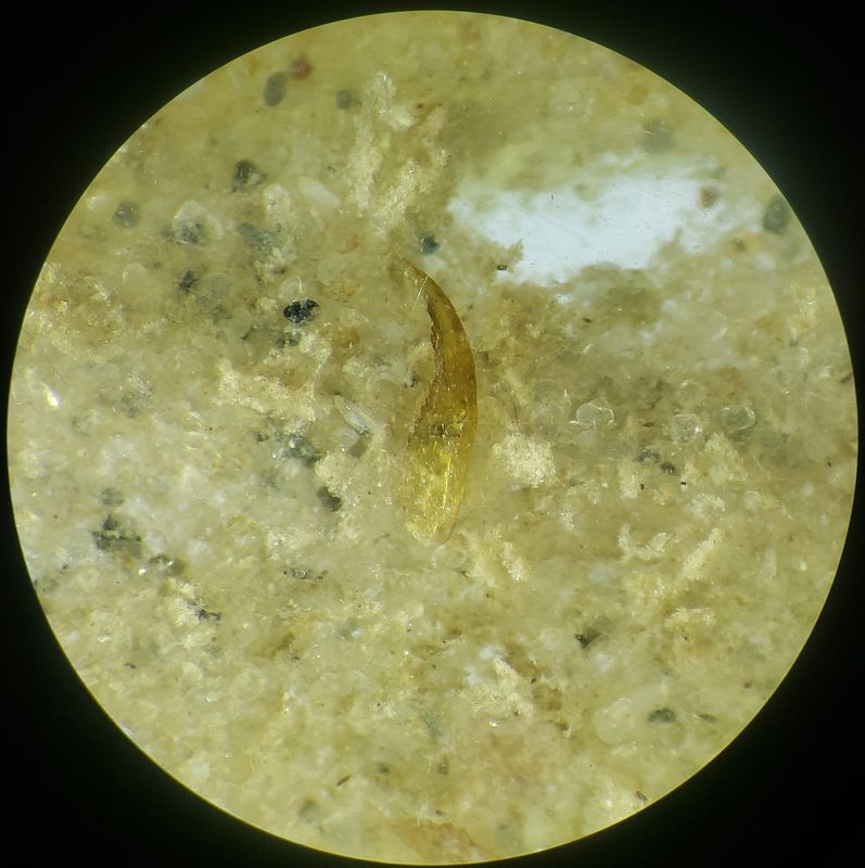 To analyse the droppings of foraging birds, we carefully sort through the samples under a microscope and look for hard parts of prey. This includes exoskeletons of crustaceans, hinges of bivalves, chaetae of polychaete worms, and jaws of polychaete worms.