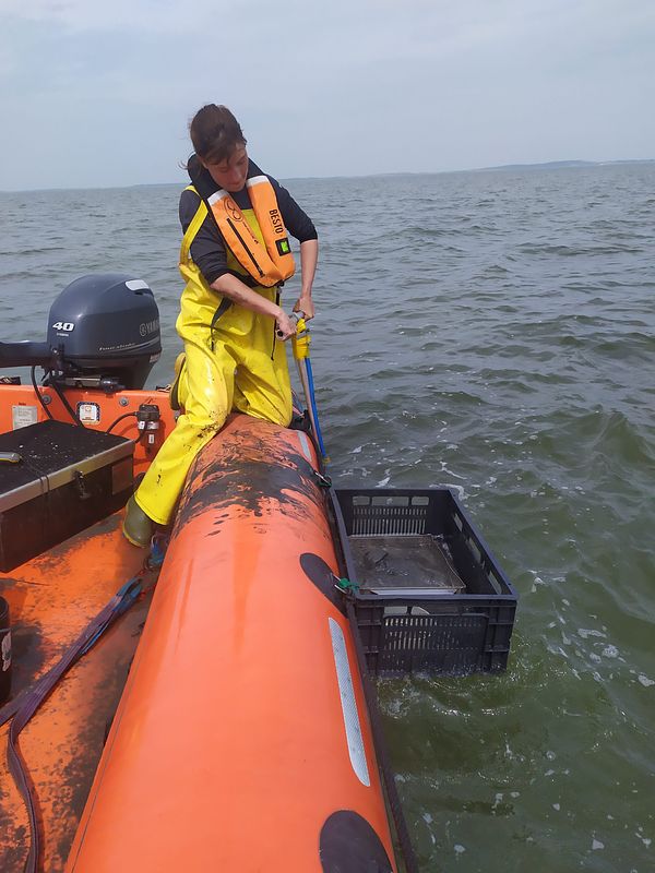 Aboard the (now retired) Navicula for a SIBES campaign. Photograph from Evy Gobbens